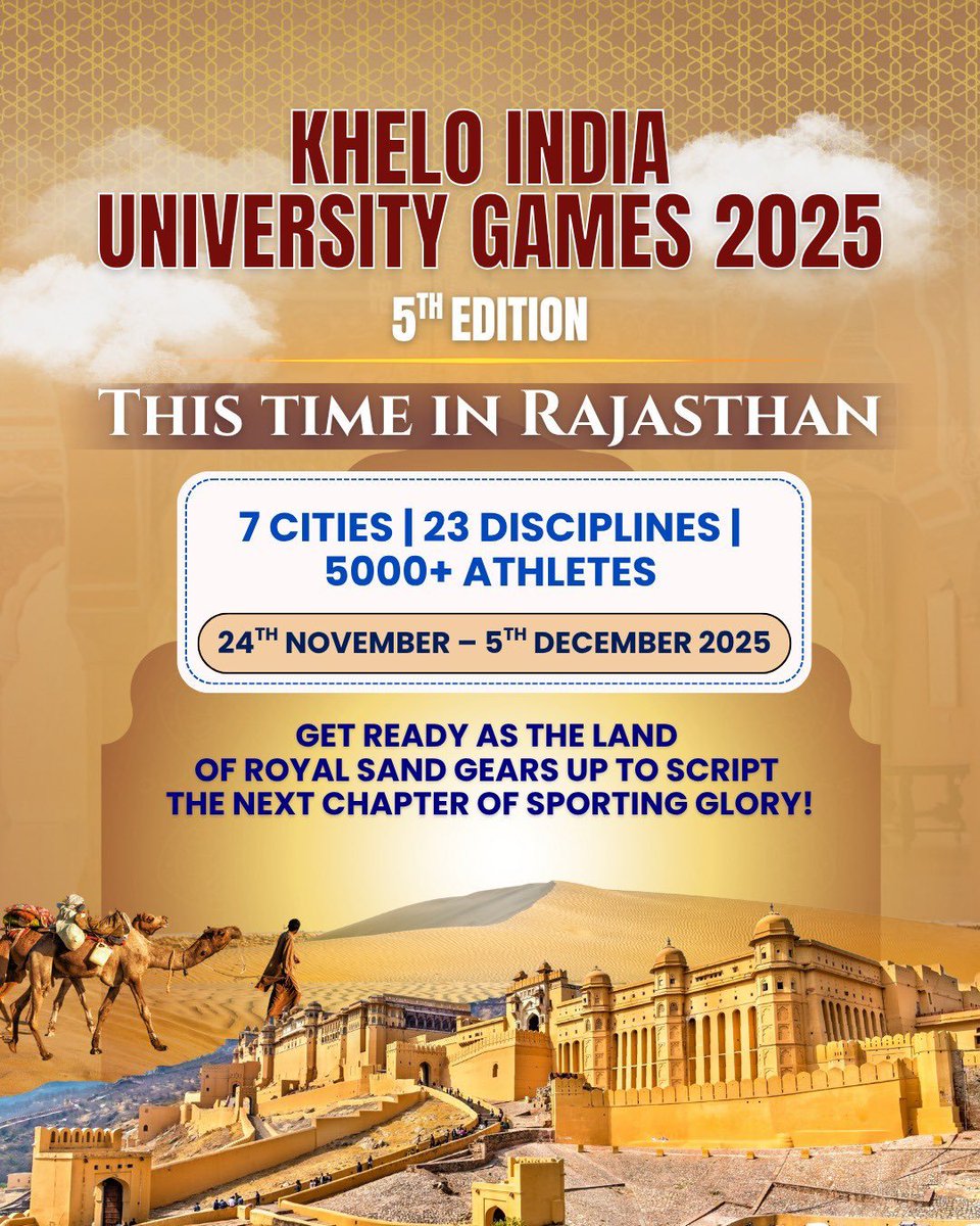 • The fifth edition of Khelo India University Games (KIUG) will be held in seven cities of Rajasthan from November 24th to December 5th, 2025