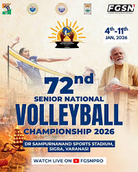 - Under Prime Minister Narendra Modi’s Khelo India vision, preparations are underway for the 72nd Senior National Volleyball Championship (Men and Women), scheduled to be held at Dr. Sampurnanand Sports Stadium, Sigra, Varanasi (Uttar Pradesh), from January 4 to 11.