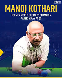 - ਸਾਬਕਾ ਵਿਸ਼ਵ ਬਿਲੀਅਰਡਸ ਚੈਂਪੀਅਨ ਮਨੋਜ ਕੋਠਾਰੀ ਦਾ 67 ਸਾਲ ਦੀ ਉਮਰ ਵਿੱਚ ਤਮਿਲਨਾਡੂ ਦੇ ਤਿਰੂਨੇਲਵੇਲੀ ਵਿੱਚ ਦਿਲ ਦਾ ਦੌਰਾ ਪੈਣ ਕਾਰਨ ਦਿਹਾਂਤ ਹੋ ਗਿਆ।