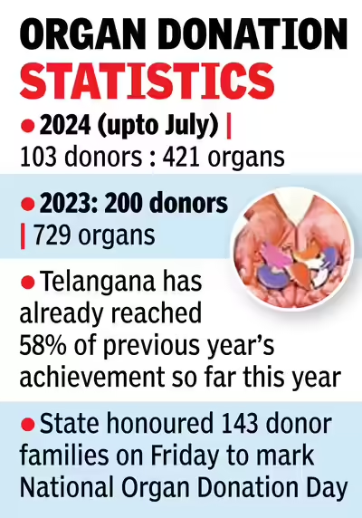 • In 2024, Telangana collected organs from 188 brain-dead donors and successfully performed 725 organ transplant surgeries.
