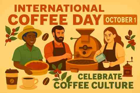 • ਅੰਤਰਰਾਸ਼ਟਰੀ ਕੌਫੀ ਦਿਵਸ ਹਰ ਸਾਲ 1 ਅਕਤੂਬਰ ਨੂੰ ਮਨਾਇਆ ਜਾਂਦਾ ਹੈ ਤਾਂ ਜੋ ਦੁਨੀਆ ਭਰ ਦੇ ਕਿਸਾਨਾਂ, ਰੋਸਟਰਾਂ, ਬਰੀਸਟਾ, ਕੌਫੀ ਸ਼ਾਪ ਮਾਲਕਾਂ ਆਦਿ ਤੋਂ ਲੈ ਕੇ ਲੱਖਾਂ ਲੋਕਾਂ ਨੂੰ ਮਾਨਤਾ ਦਿੱਤੀ ਜਾ ਸਕੇ ਜੋ ਉਪਭੋਗਤਾ ਦੇ ਰੂਪ ਵਿੱਚ ਪੀਣ ਵਾਲੇ ਪਦਾਰਥ ਬਣਾਉਣ ਅਤੇ ਪਰੋਸਣ ਲਈ ਸਖਤ ਮਿਹਨਤ ਕਰਦੇ ਹਨ।